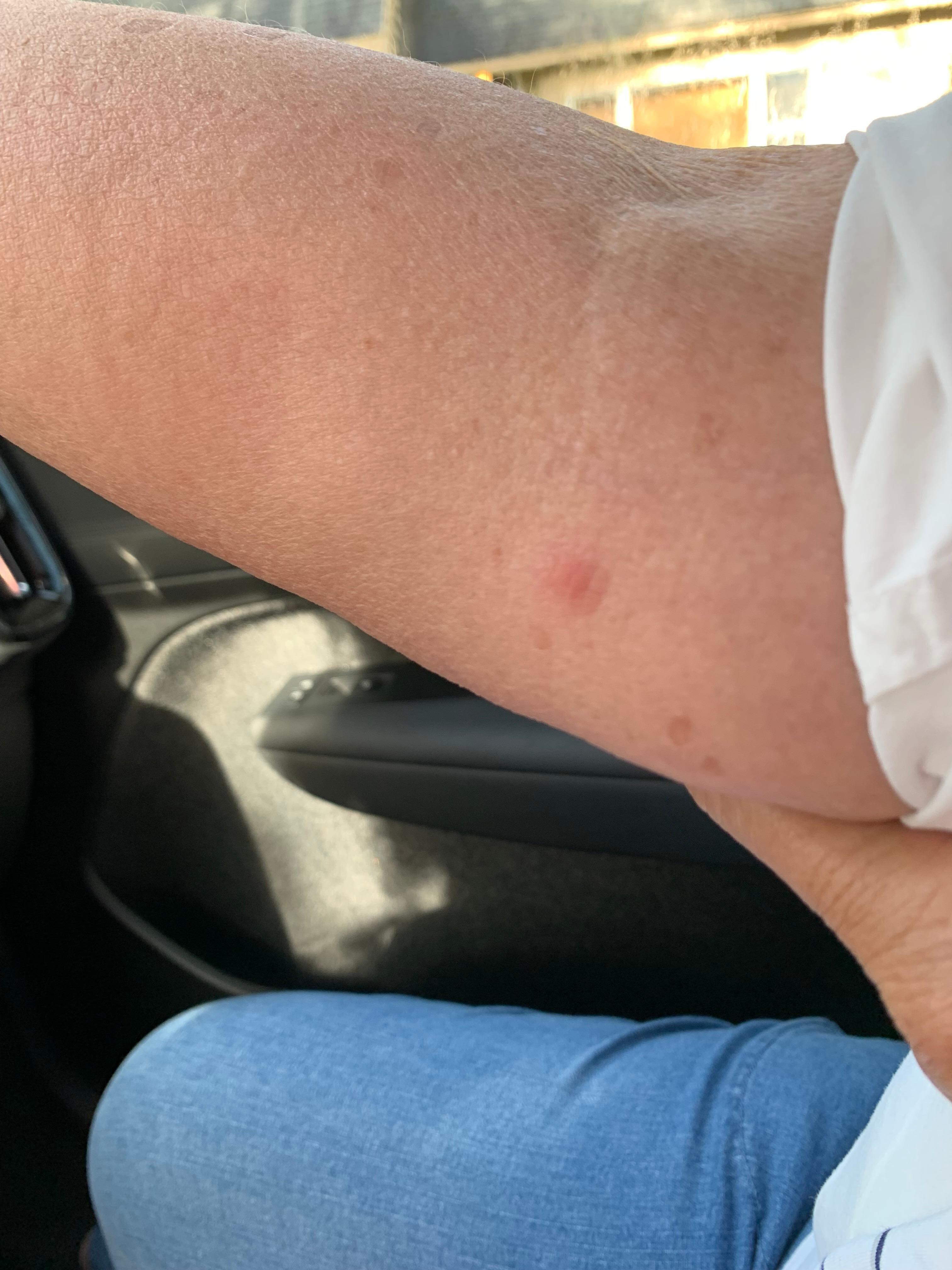 Something at night and my entire right elbow area was swollen and hot. I will enclose a photo of my elbow. I was also bitten on the shoulder area and the top of my thighs. Not sure what it was. The view was gorgeous but not worth the bites.