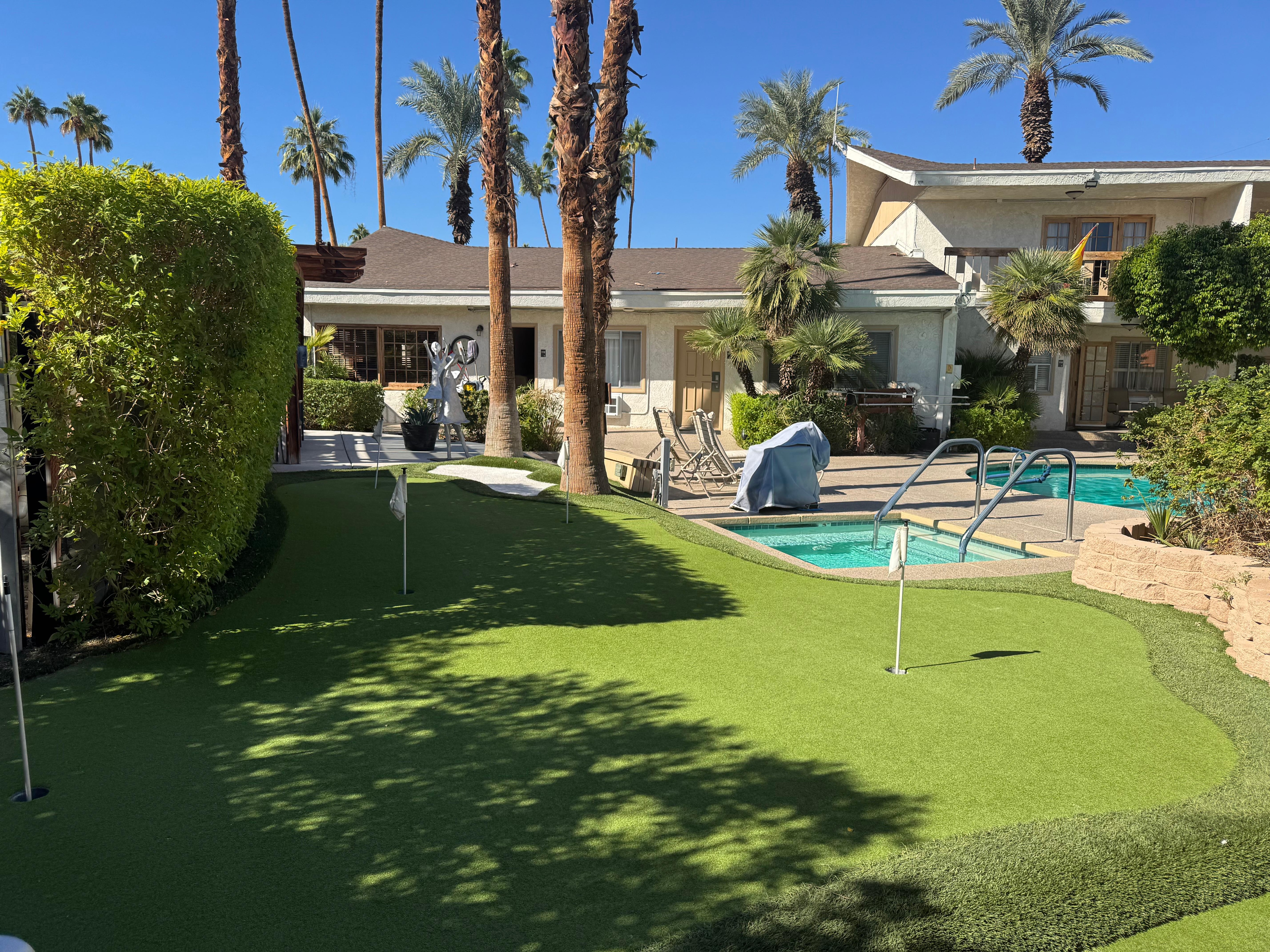 Five stars for The Inn at Deep Canyon — a glorious relic of Palm Springs past, still standing proud in a world gone plastic and soulless. This place is the real deal — old-school desert charm where the pool is the beating heart of the operation. Not one of those sterile, “infinity-edge” monstrosities — no, this is the kind of pool Sinatra probably nursed a hangover beside, half-laughing and half-regretting. You can practically smell the history baked into the concrete.